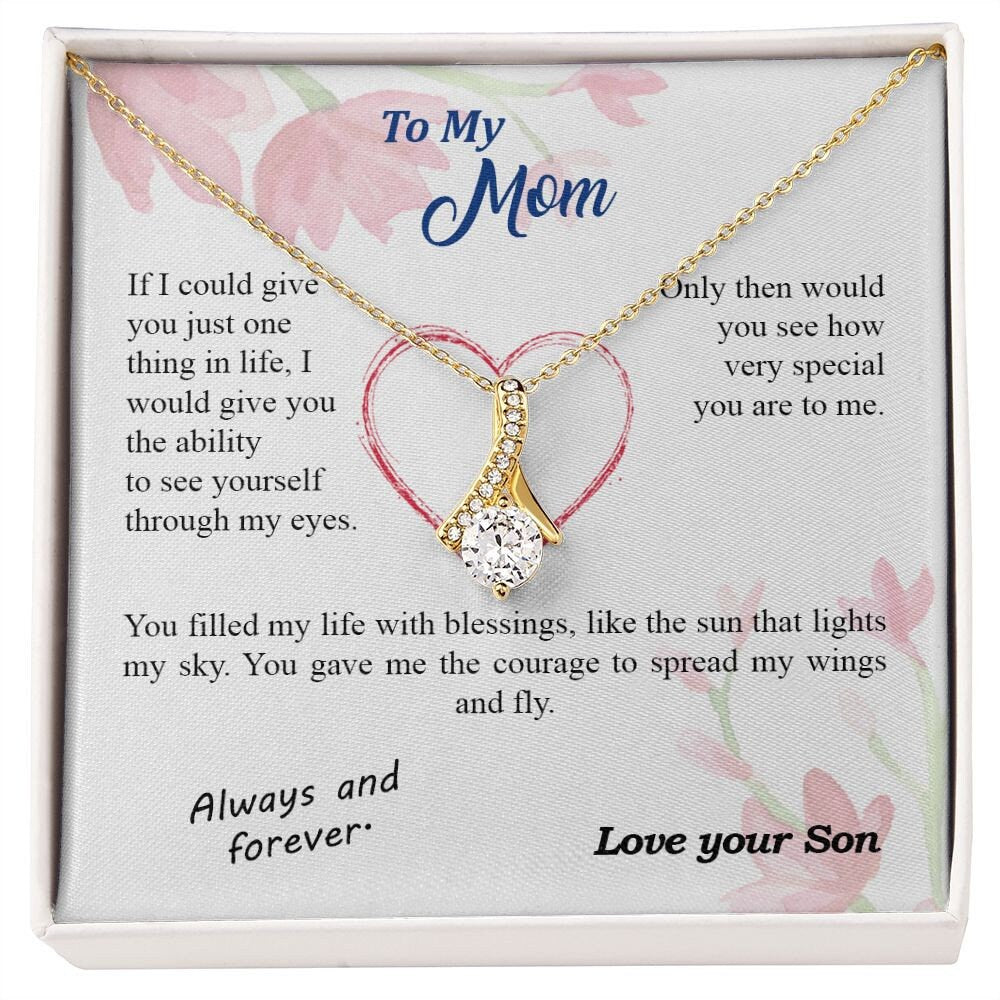 Imagine her reaction when she opens this stunning gift! The Alluring Beauty necklace features a petite ribbon shaped pendant that is sure to dazzle your special someone.